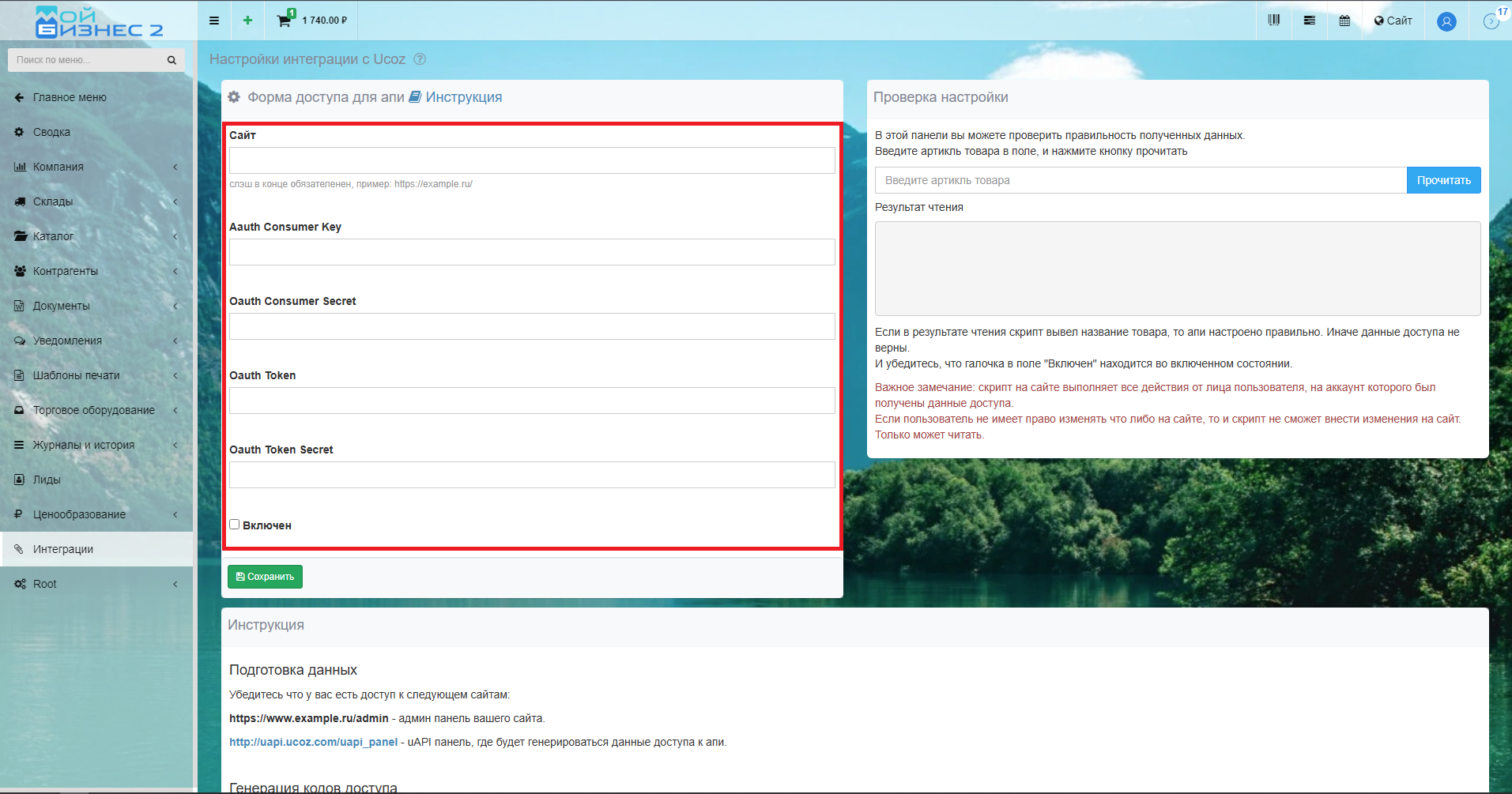 Вывод: Таким образом можно подключить интеграцию с Ucoz, которая позволяет передавать и обновлять товары из МойБизнес2 на сайт, который создан на платформе Ucoz.