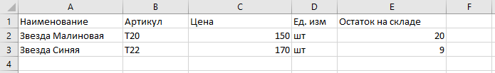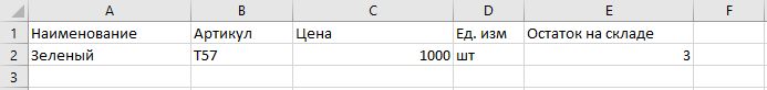 2) Создаем файл импорта, обязательно добавляем в него столбец "Остаток на складе". С помощью импорта данной таблицы остаток товара пополнится на количество - 3 шт.