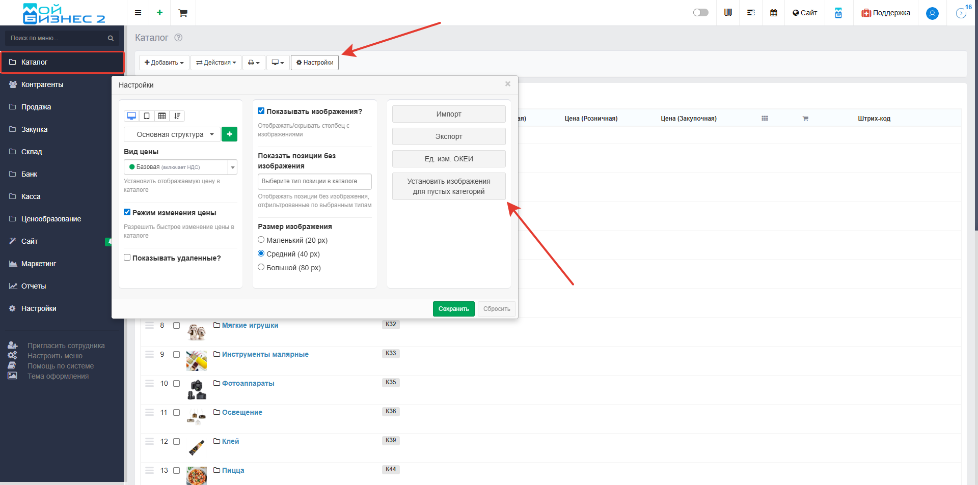 Вывод: таким образом, в МойБизнес2 с помощью функции автоматической подстановки изображений для пустых категорий можно назначить им изображения на основе случайных товаров из этих категорий.