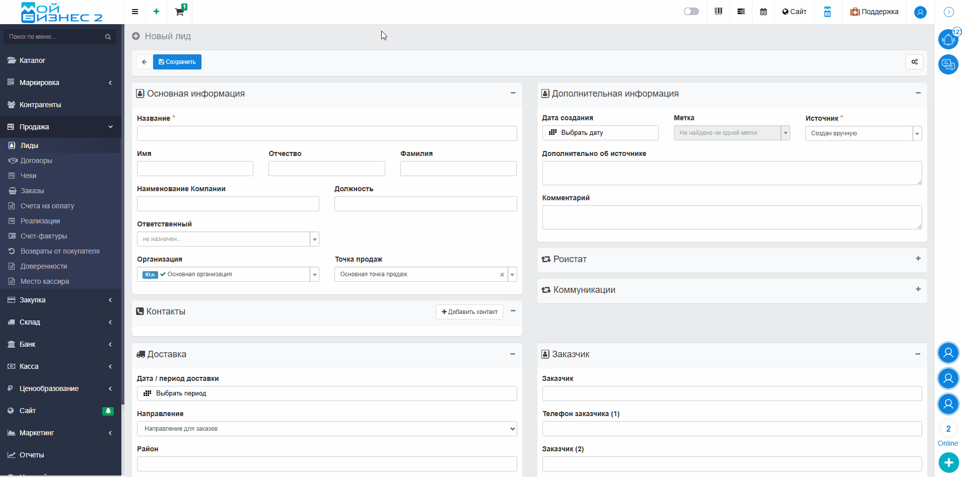 Важно понимать, что, как правило, создание ЛИДов происходит посредством интеграции с какой-либо системой, вручную Лида создают крайне редко, однако данный вариант стоит рассмотреть.