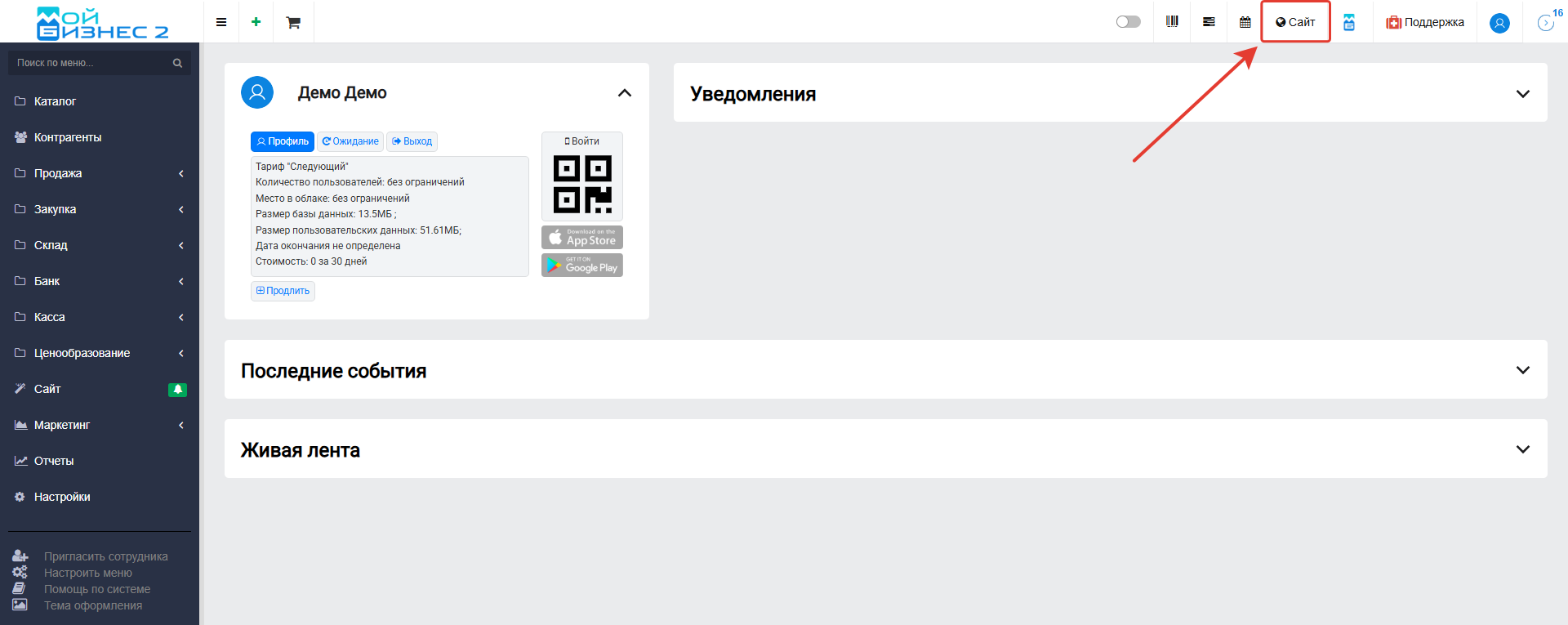 В МойБизнес2 имеется встроенный интернет-магазин, с помощью которого можно реализовывать товары и услуги. Подробнее об этом можно прочесть тут.