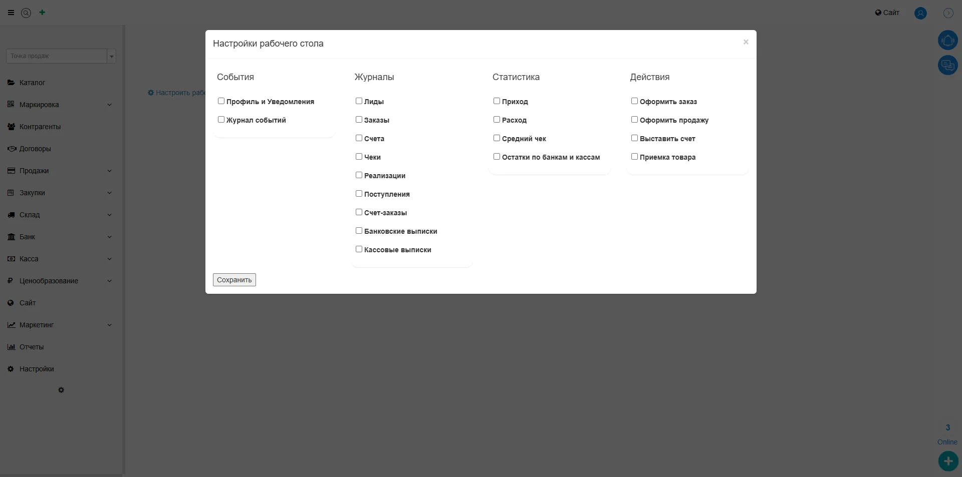 Вывод: таким образом, гибкая настройка рабочего стола в МойБизнес2 позволяет самостоятельно сформировать удобное пространство, выбрав нужные события, журналы, статистику и быстрые действия, чтобы всё самое важное всегда было под рукой.