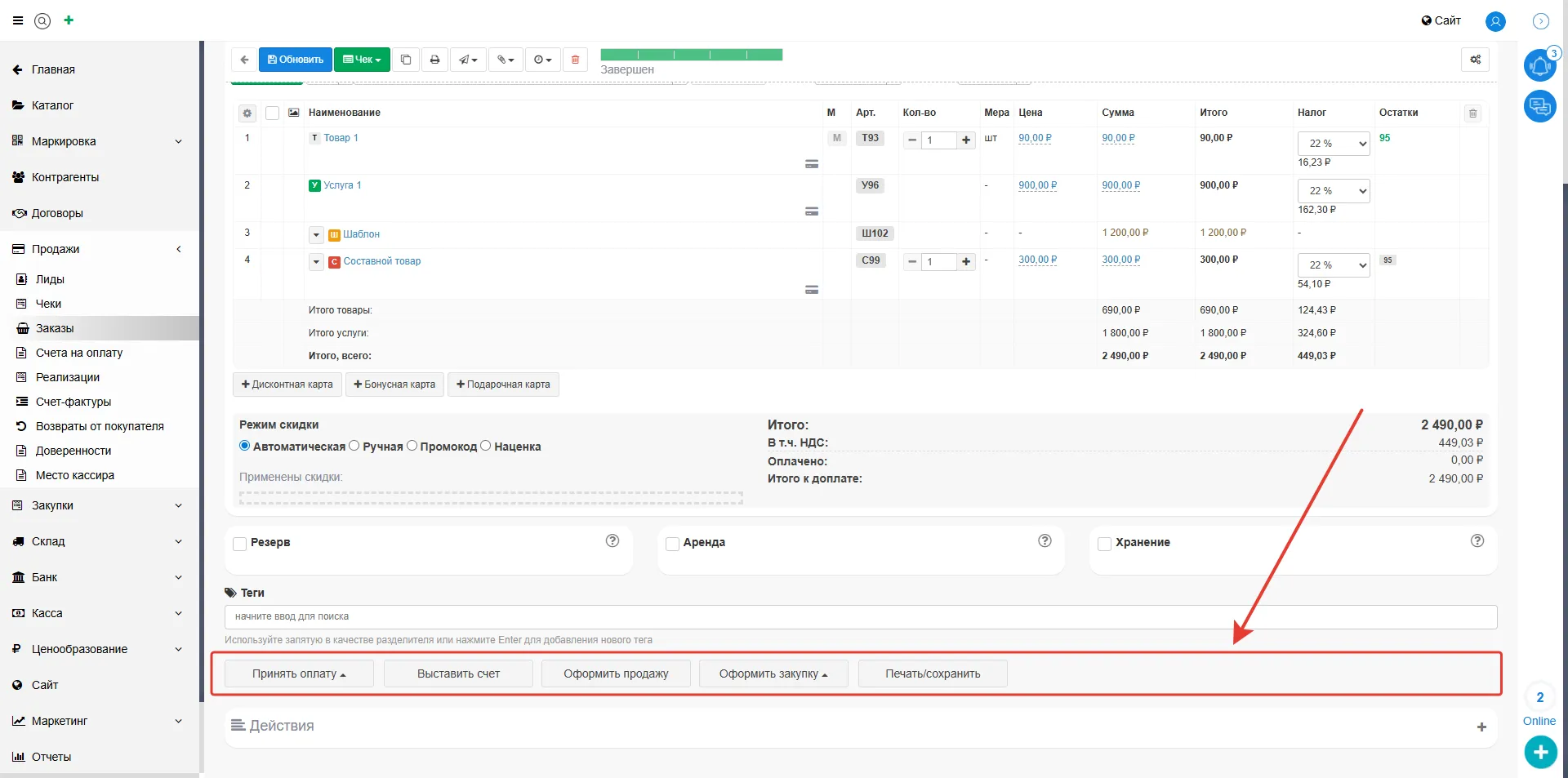 Реализованы кнопки действий внутри документов. Теперь принять оплату, выставить счет, оформить продажу и оформить закупку можно ещё быстрее и удобнее!