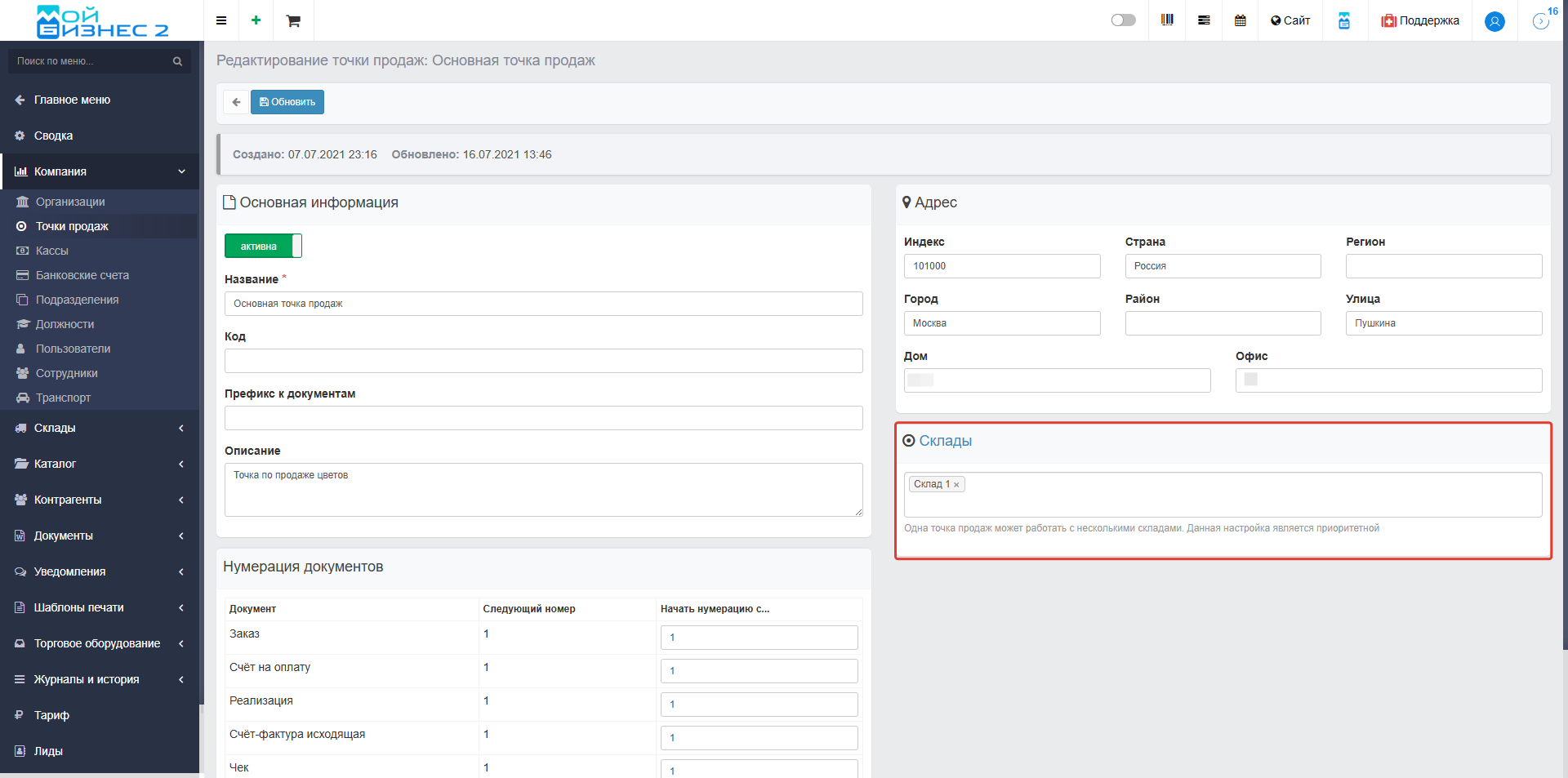 10. Настройка прикрепления склада списания к точке продаж