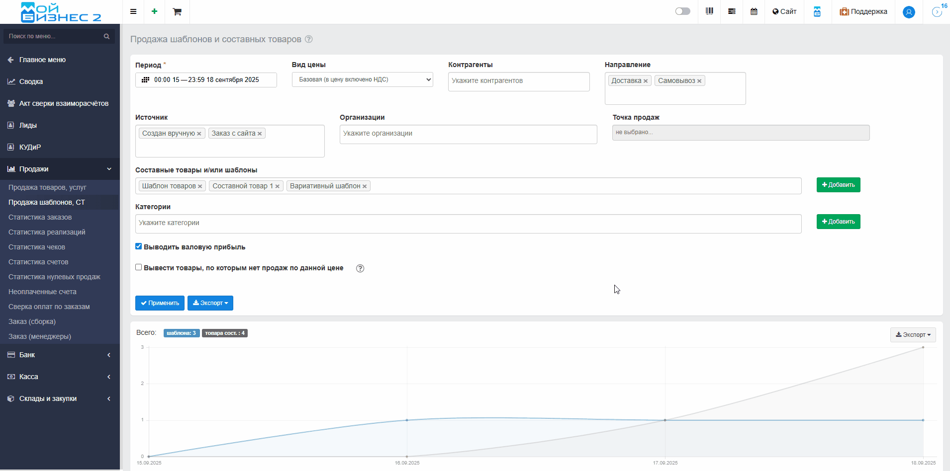 2. Экспорт отчета по продажам шаблонов и составных товаров
