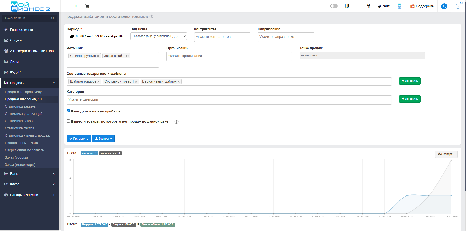 1. Формирование отчета по продажам шаблонов и составных товаров