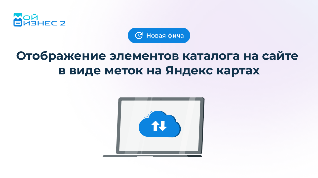 В МойБизнес2 реализована функция отображения элементов каталога на Яндекс.Картах. Для этого необходимо предварительно настроить интеграцию с картами. В карточке любого объекта - товара, услуги, составного товара или шаблона - можно указать географический адрес с помощью встроенного модуля Яндекс.Карт. После этого элемент автоматически отобразится в виде метки в соответствующем разделе сайта.
