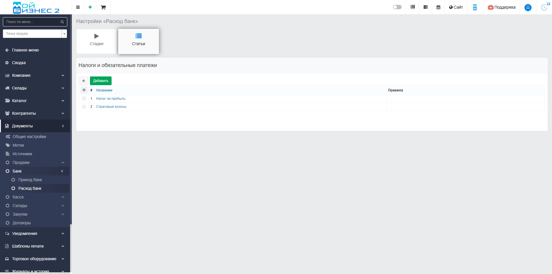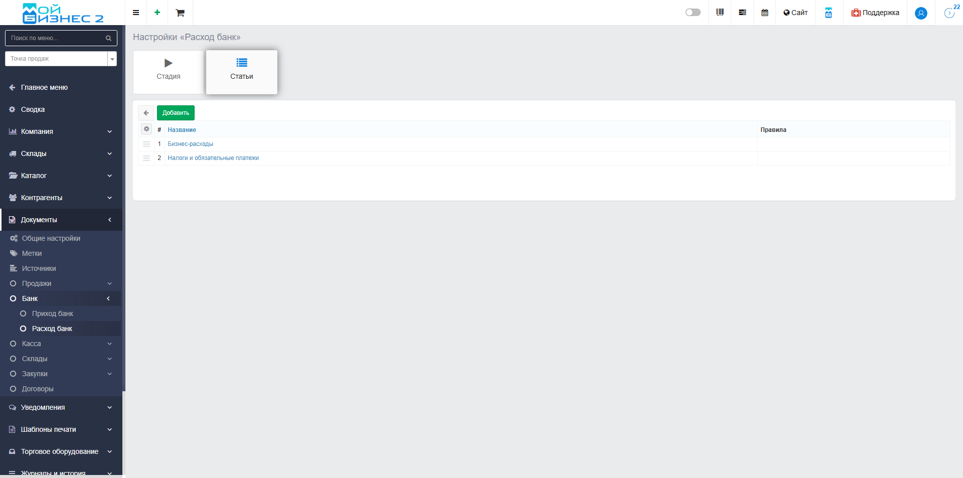 Эти статьи создаются и настраиваются пользователем самостоятельно, что позволяет вести детальный и гибкий финансовый учет в соответствии со спецификой бизнеса.