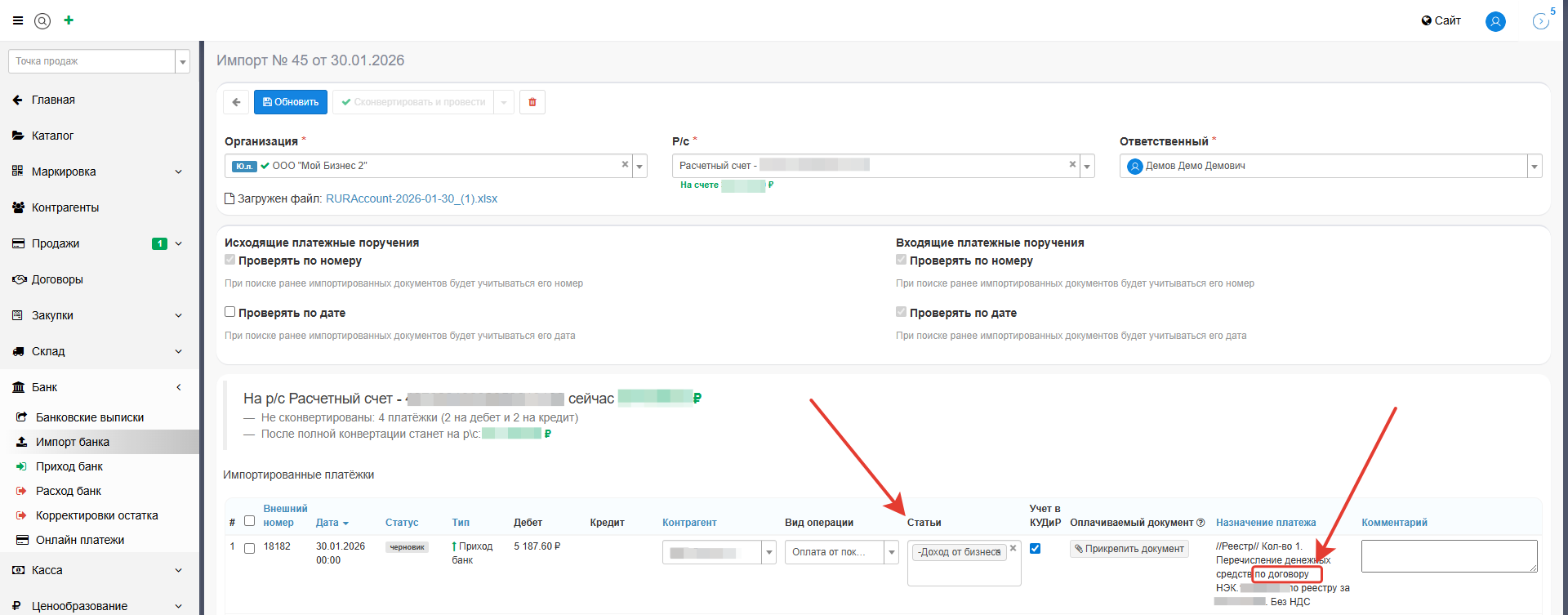 4. Как назначать статьи в импорте банка
