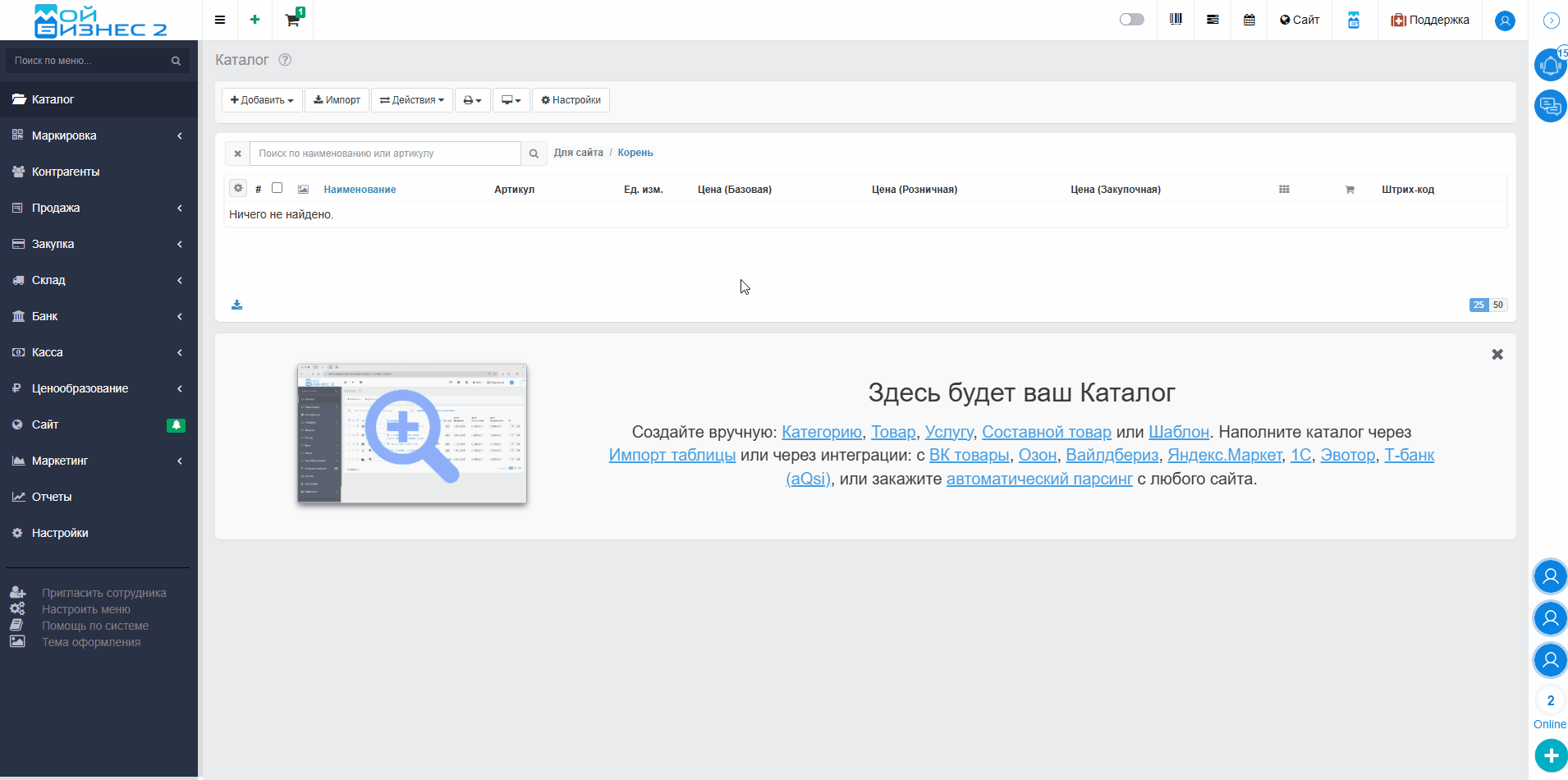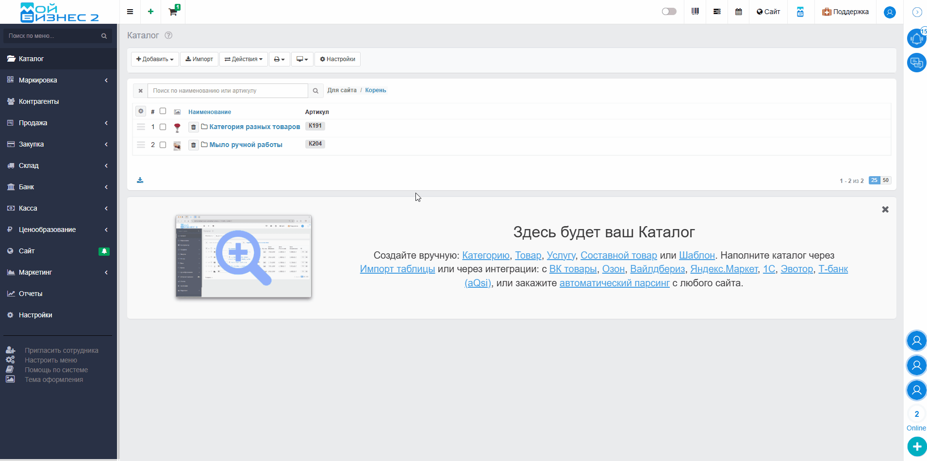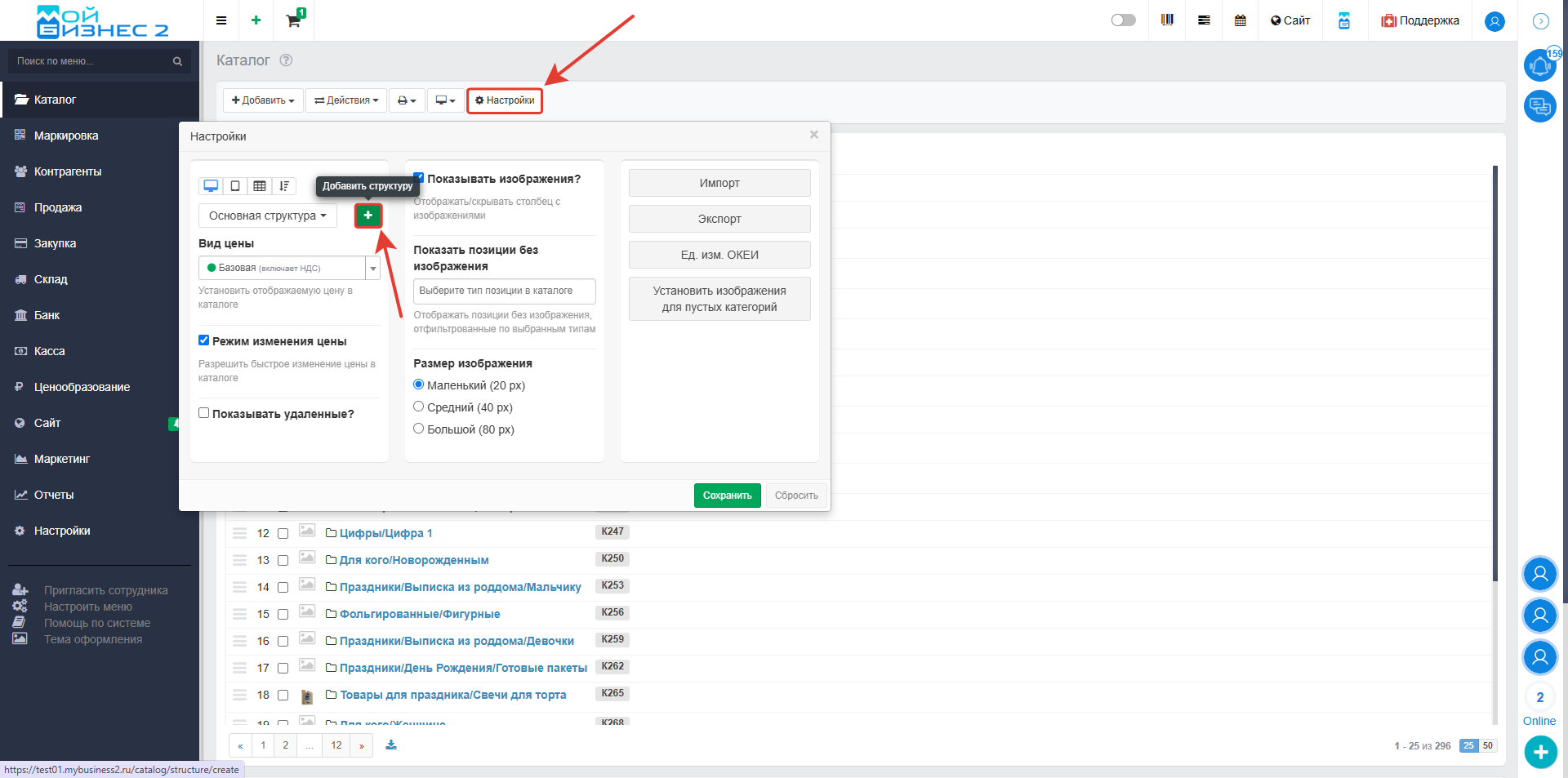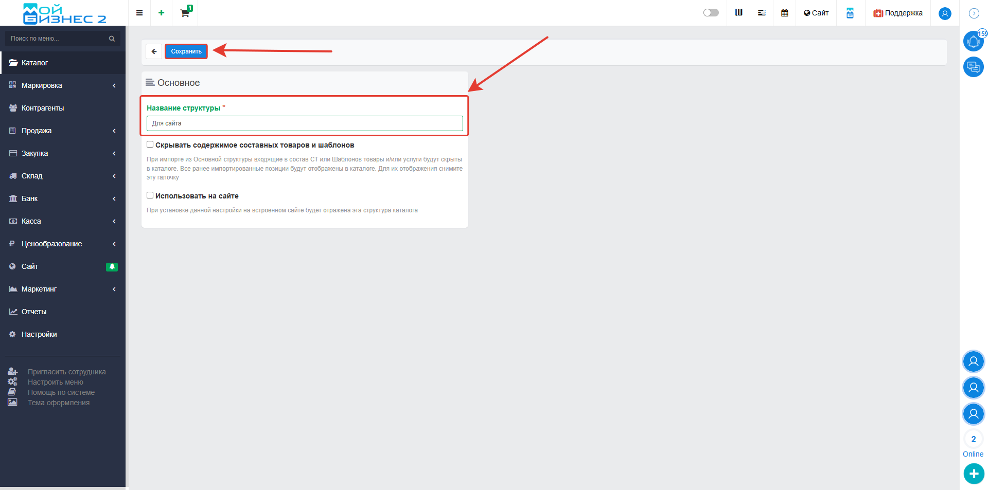 1. Множественные структуры: вы можете создавать любое количество структур каталога с произвольными названиями (например, "Для сайта"). Это помогает разделять товары по различным логическим группам или каналам продаж.